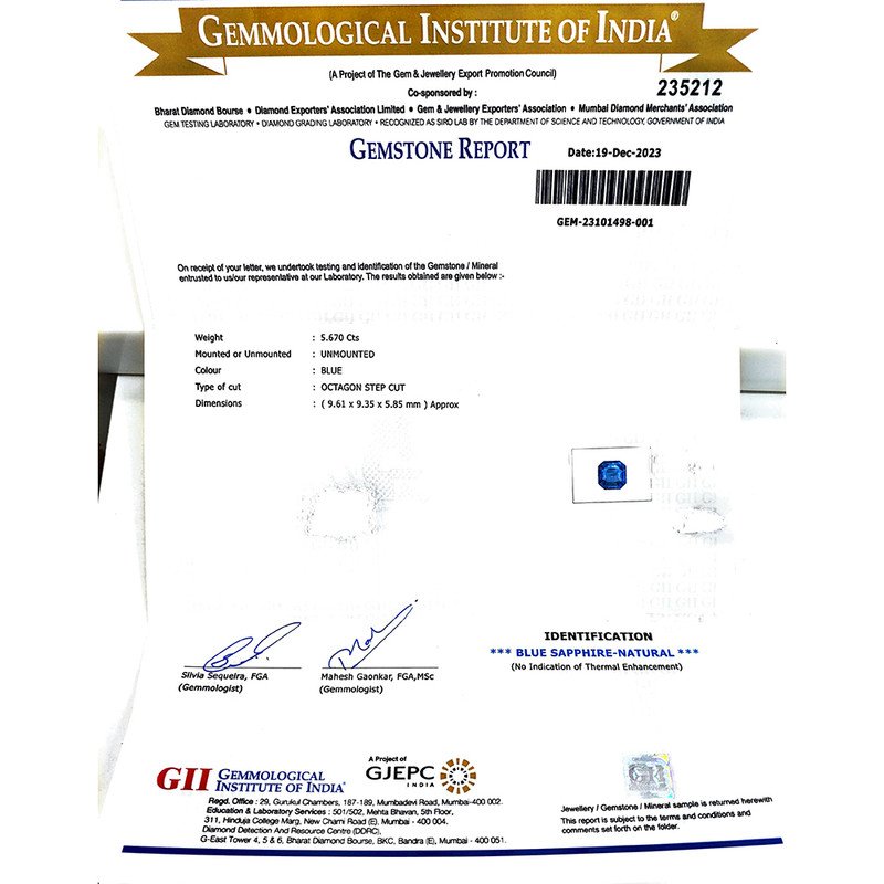 GII Cert. Blue Sapphire